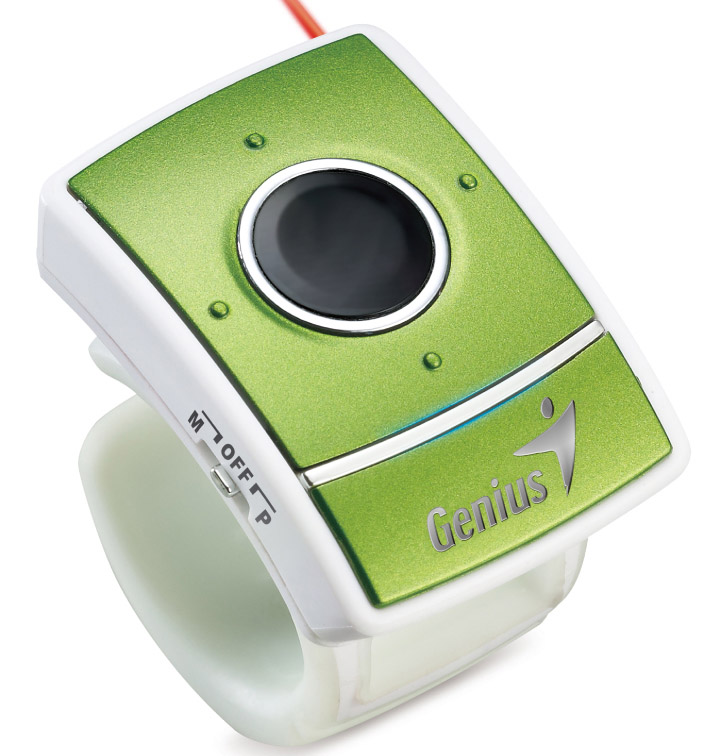 El Ring Presenter de Genius es el primer controlador táctil del mundo diseñado como anillo para el trabajo, los viajes, los estudios y usuarios tecnológicos. Su peso de apenas 9 gramos permite de una manera muy cómoda realizar las presentaciones o navegar por Internet. Diseñado como añillo, está orientado a los movimientos naturales de la mano para personas que necesitan un presentador inalámbrico con funciones de mouse. Con tan solo poner el dispositivo en el dedo, como un anillo, se puede controlar cómodamente cualquier programa o navegar por Internet con simplemente deslizar el pulgar sobre el panel táctil del dispositivo para mover el cursor y hacer click con sus tres botones, derecho, central, o izquierdo, de la misma manera de cómo funciona un mouse tradicional, y al igual que utilizar su puntero láser para señalar en las presentaciones aquellos puntos de mayor relevancia.