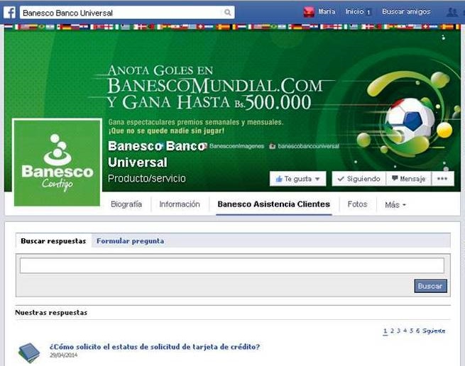 El perfil de Banesco Banco Universal en Facebook dispone de la sección “Banesco asistencia clientes”, un espacio en el que el usuario puede encontrar las respuestas a sus dudas sobre los productos y servicios de la entidad bancaria.