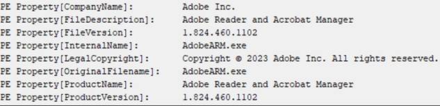 “Al analizar lo metadatos, se observa que los mismos buscan aparentar ser de la aplicación Adobe pero no cuentan con una firma digital válida ni certificado asociado, lo cual confirma que no se trata de un binario legítimo emitido por la compañía.”, comenta Martina López, Investigadora de Seguridad informática de ESET Latinoamérica.