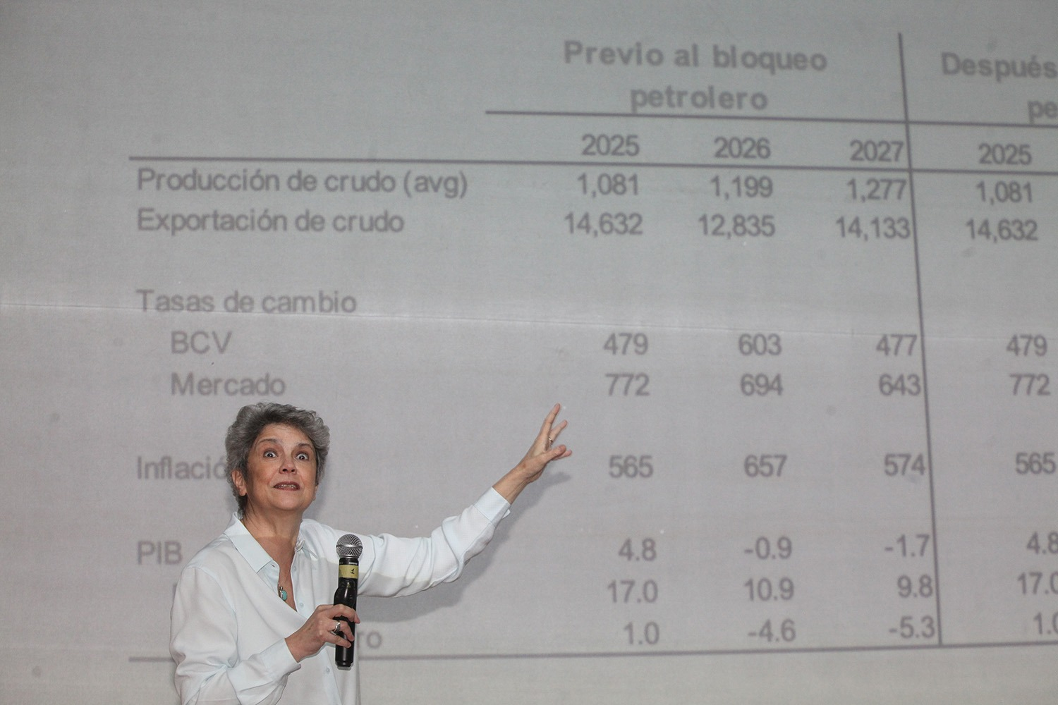 «La recaudación petrolera mejora ostensiblemente. Si le quitas el financiamiento monetario, es decir, la porción pagada con dinero del Banco Central de Venezuela, la caída en 2025 fue de 20% y eso explica parte de la crisis cambiaria que tuvimos en el año. La oferta de divisas canalizada en 2025, incluyendo las subastas de USDT, bajó a $5.432 millones, una caída de 29% con respecto a 2024. En 2026 tendríamos una recuperación», explicó Herrera.