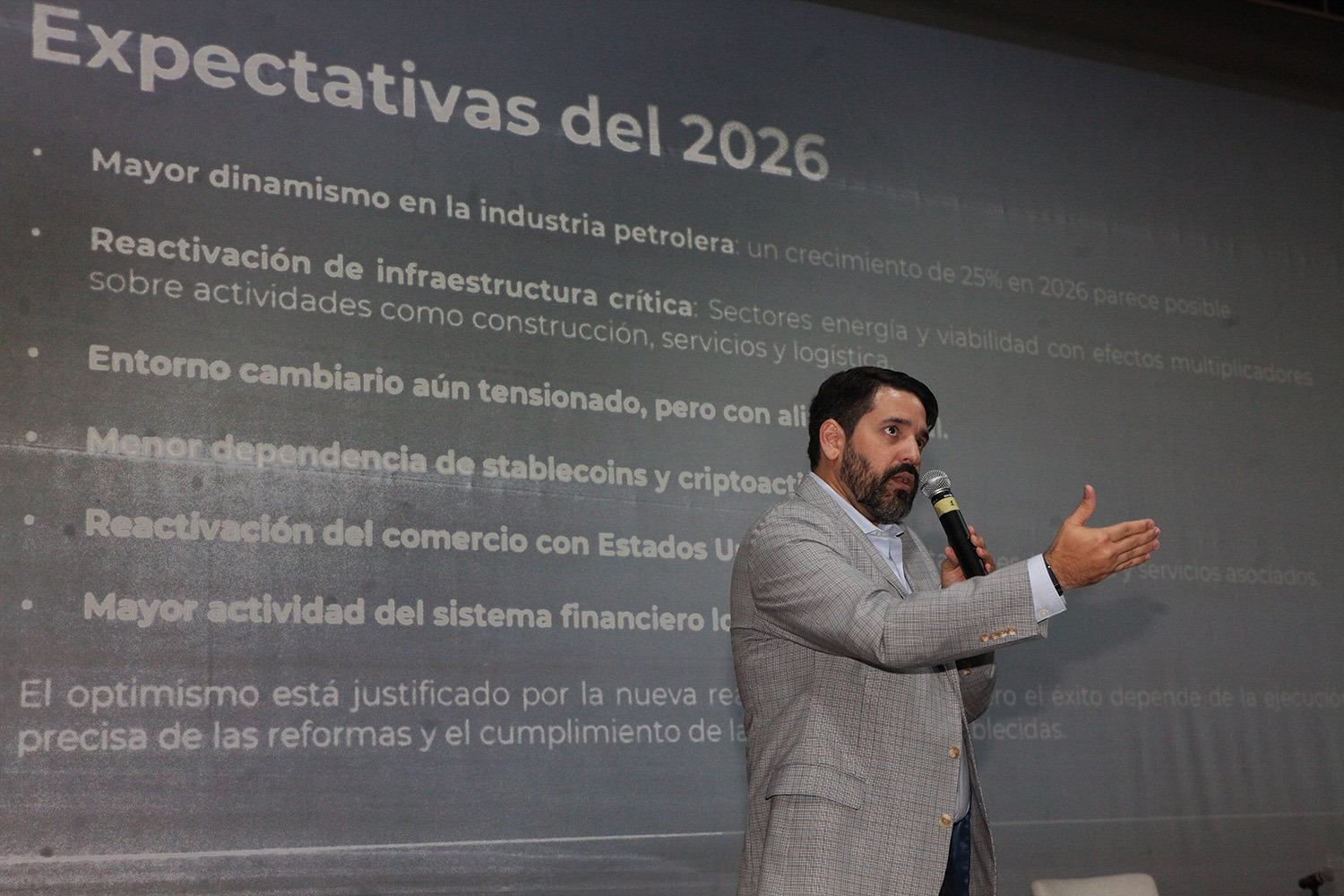 «Para 2026 se proyecta un aumento tanto de los ingresos petroleros como de los ingresos totales. Si bien lo egresos crecerían respecto a 2025, se mantendrían por debajo de los ingresos esperados del año», puntualizó Oliveros.